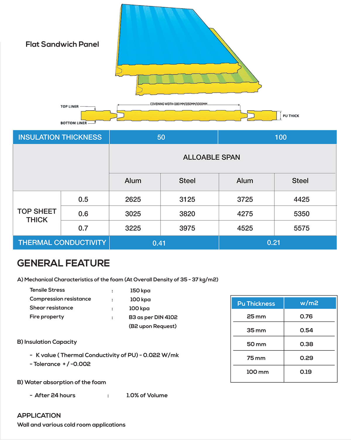 Cold room panels: Thickness can be 50 mm, 100mm and 150mm
