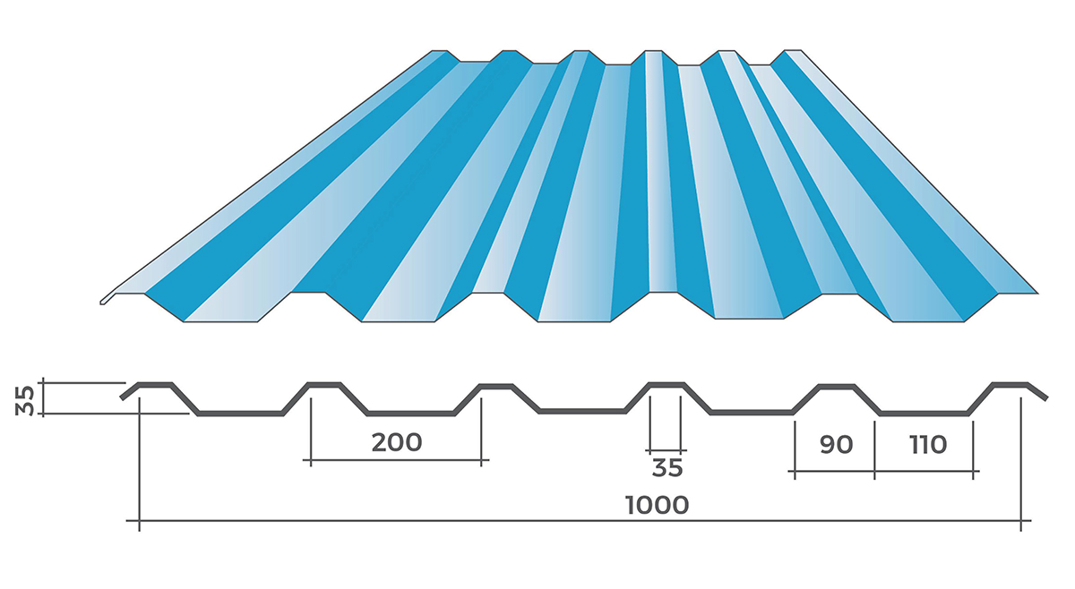 EXP 35/200 CORRUGATED ROOF Et WALL CLADDING SHEET (COVER WIDTH 1000MM), ALUMINIUM
