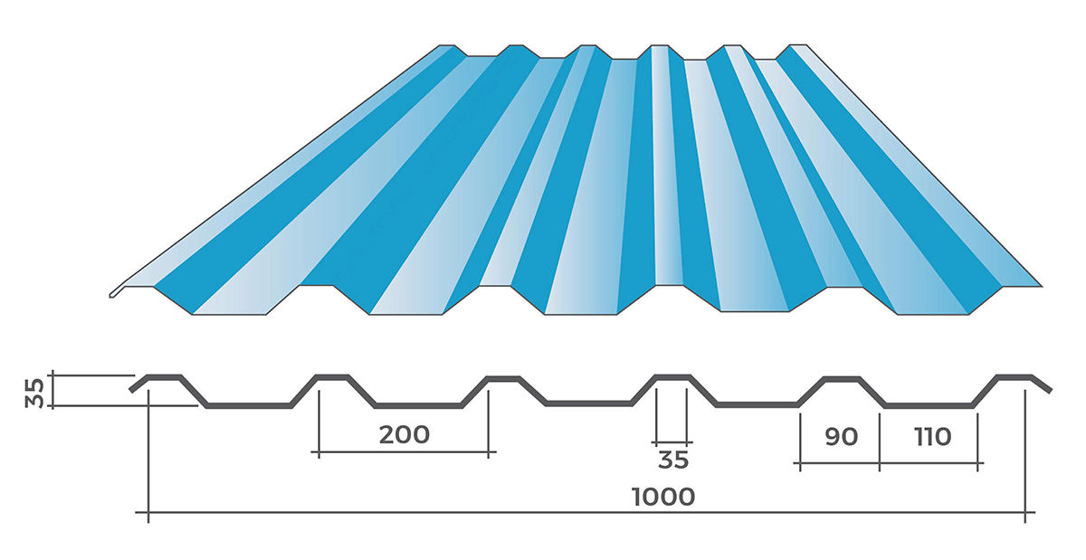 EXP 35/200 CORRUGATED ROOF & WALL CLADDING SHEET ( COVER WIDTH 1000 MM) GI